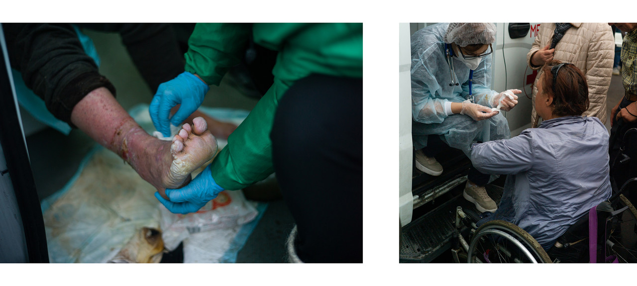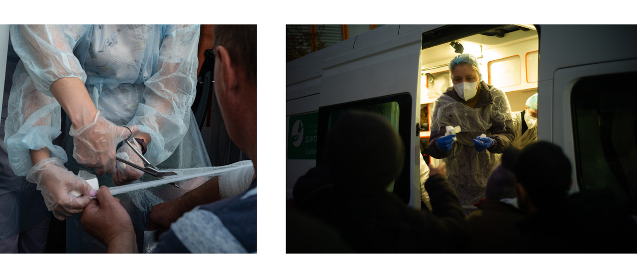 Половина, поев, отправляется к нашим медикам волонтерам.