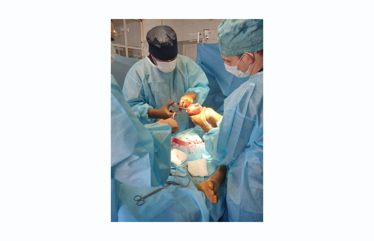 …поступил на этой неделе в Донецкий Травматологический Центр. Ранение в голень тяжёлое, он получил его во время эвакуации.